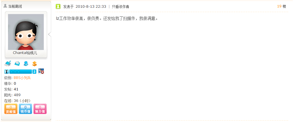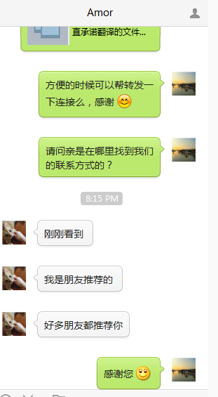 非常感谢客户给我们留下的珍贵好评,2009年当时我刚刚读完翻译硕士毕业来到阿村没多久,找工作很艰难,就试着阿德莱德bbs做广告揽点翻译的工作做,当时大家对我的工作很是支持,这么多年回想起来,心存感激。也希望这么多年陪伴我的客户,生活越来越好。